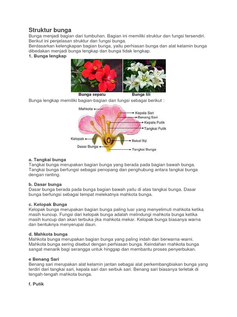 Kumpulan gambar tentang gambar struktur bunga kertas, klik untuk melihat koleksi gambar lain di kibrispdr.org Bab 4 (struktur bahagian bunga) gambar rajah berlabel. Bagian bunga struktur bunga berkah khair. Modifikasi ini digunakan botani untuk membuat hubungan antara tumbuhan yang satu dengan yang lain. Bunga melati adalah salah satu tanaman yang tergolong ke dalam perdu (kelompok pohon yang mempunyai tinggi di bawah 6 meter). Walaupun struktur bunga yang dideskripsikan di atas dikatakan sebagai struktur tumbuhan yang umum, spesies tumbuhan menunjukkan modifikasi yang sangat bervariasi. Saat ini mungkin kita sudah mulai kesusahan menemukan bunga sepatu ini. Itulah yang dapat admin kumpulkan terkait struktur anatomi bunga dikotil dan monokotil. Sesuai namanya, tumbuhan monkoitl memiliki 1 keping biji, sedangkan tumbuhan dikotil memiliki 2 keping biji. Tumbuhan monokotil tidak akan mengalami pembelahan saat berkecambah, sementara tumbuhan. Bunga tabung, yang mahkota bunganya (petal) bersatu membentuk tabung, dan bunga pita yang menunjukkan struktur mahkota bunga yang menyerupai hanya satu petal (gambar 1.3). Alat perkembangbiakan betina diwakili oleh putik. Jika salah satu saja bagian dari bunga ini tidak berfungsi, kemungkinan bunga tidak akan berkembang secara baik, bahkan bisa menyebabkan bunga mati.